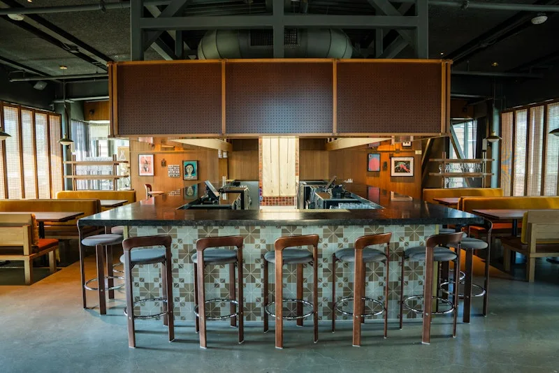 On March 31, Cole and the Hai Hospitality group will make good on that promise, debuting the thoroughly modern Uchi in a meticulously renovated century-old manufacturing building, a historical marker in Plaza Midwood’s Commonwealth development. Brick walls that soar two stories and enormous windows wrap the vast room, with a sushi bar that curves into a cocktail bar, cozy booths and streamlined tables and chairs. Light-wood floors and paneling are accessorized with copper screens, statement plants, whimsical wallpaper and sculptural lighting.